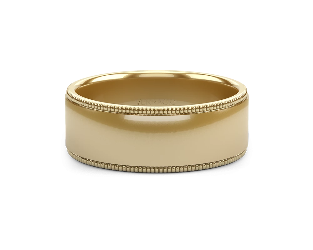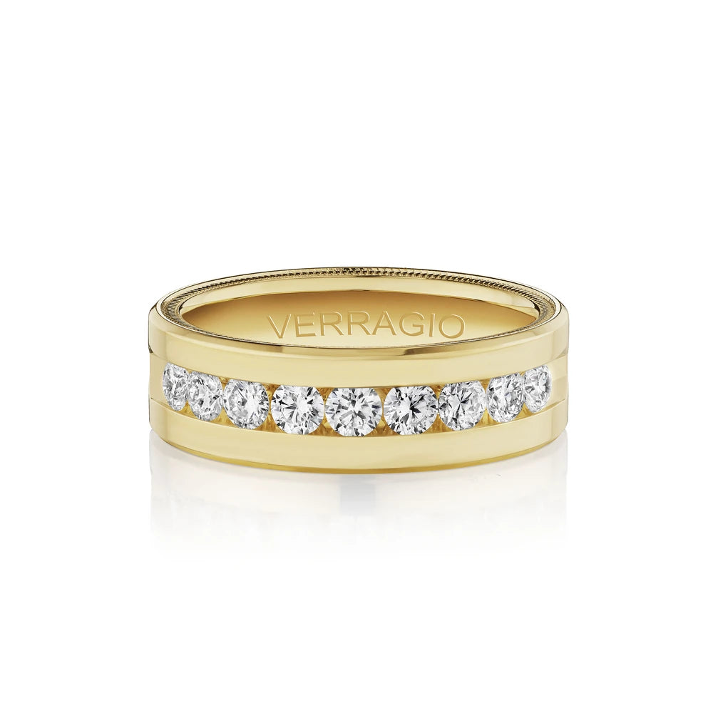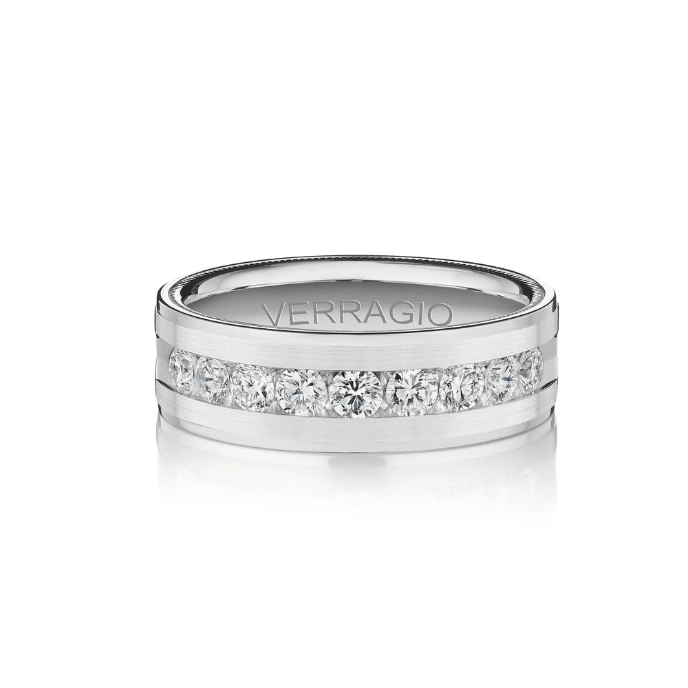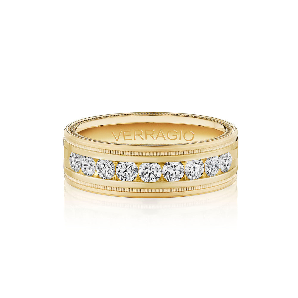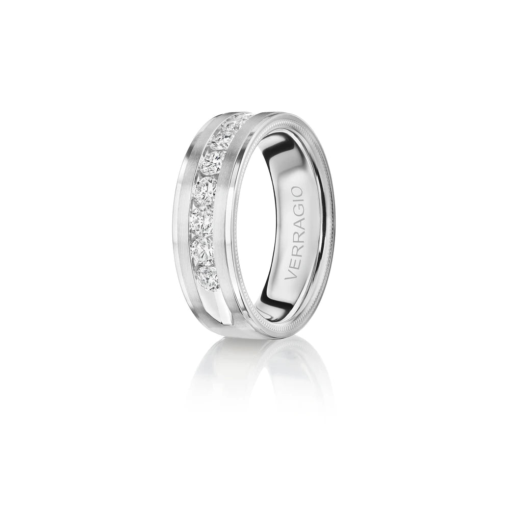 One of our latest wedding band designs in a 8mm width with a high polish finish, made complete with signature Verragio bead-work giving it a tailored feel. Whether you prefer modern or traditional styles, these wedding bands are precisely crafted with artisanal details to stand out.