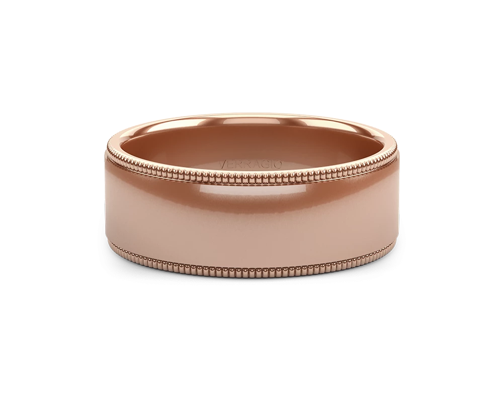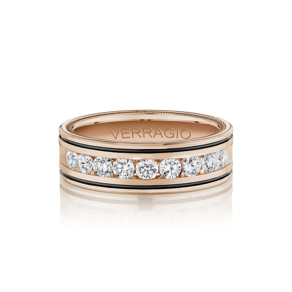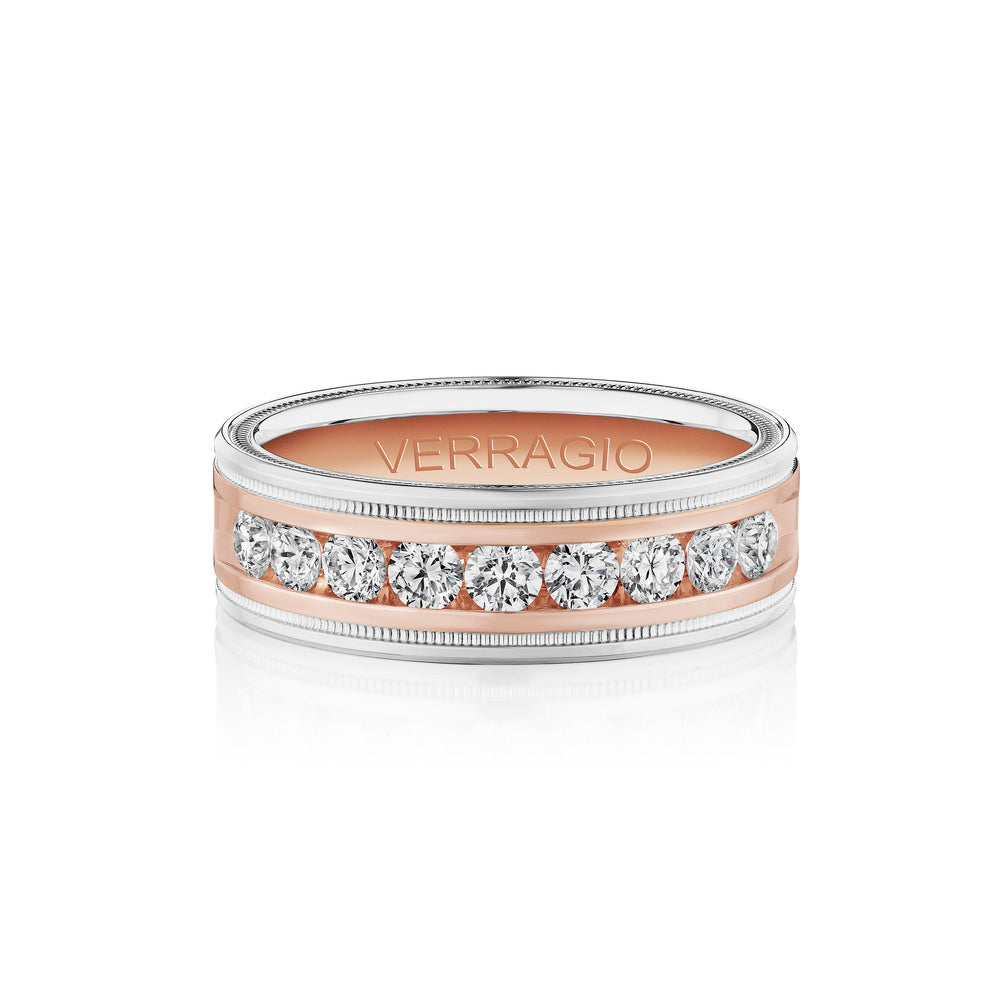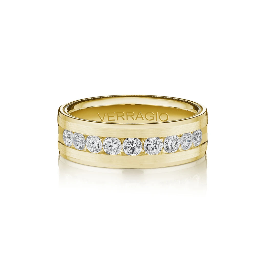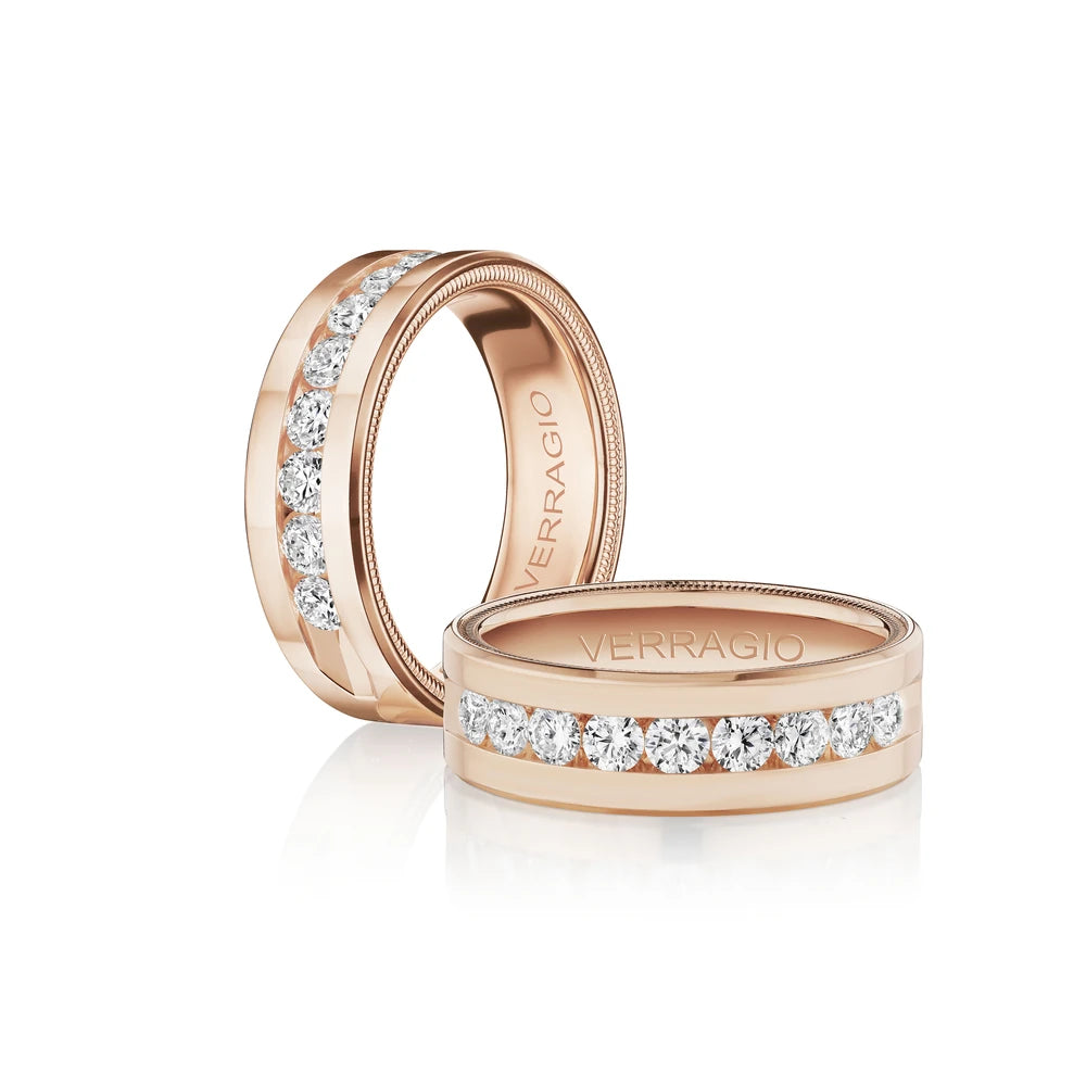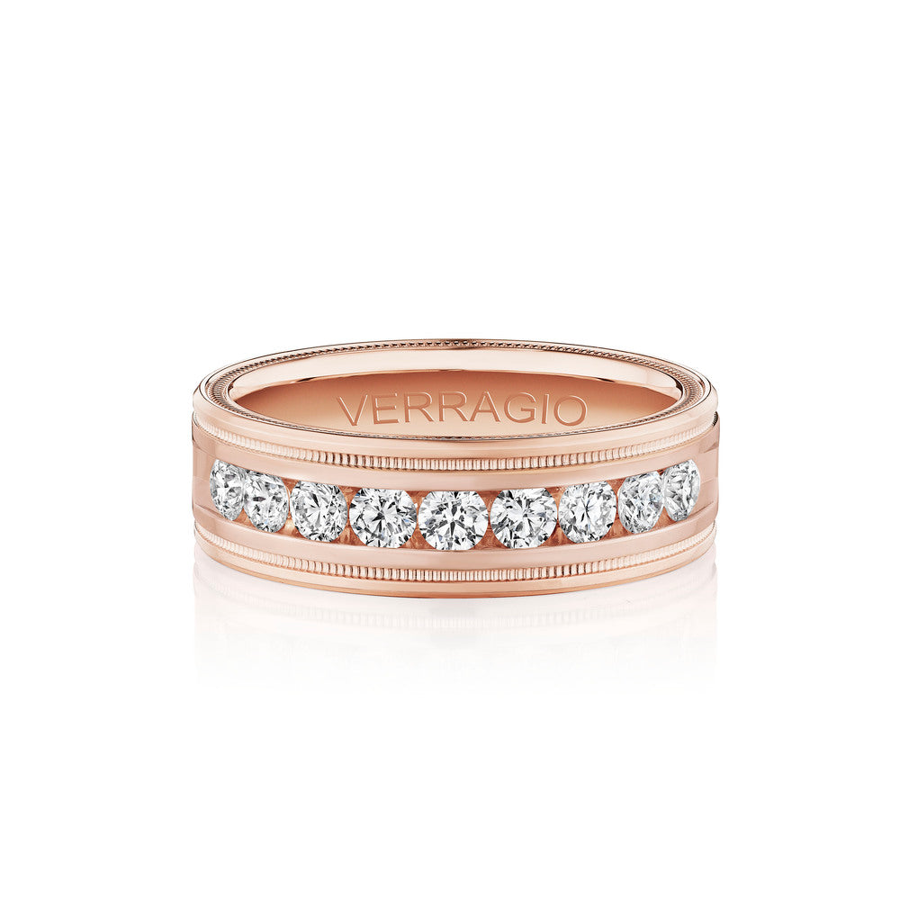 One of our latest wedding band designs in a 8mm width with a high polish finish, made complete with signature Verragio bead-work giving it a tailored feel. Whether you prefer modern or traditional styles, these wedding bands are precisely crafted with artisanal details to stand out.