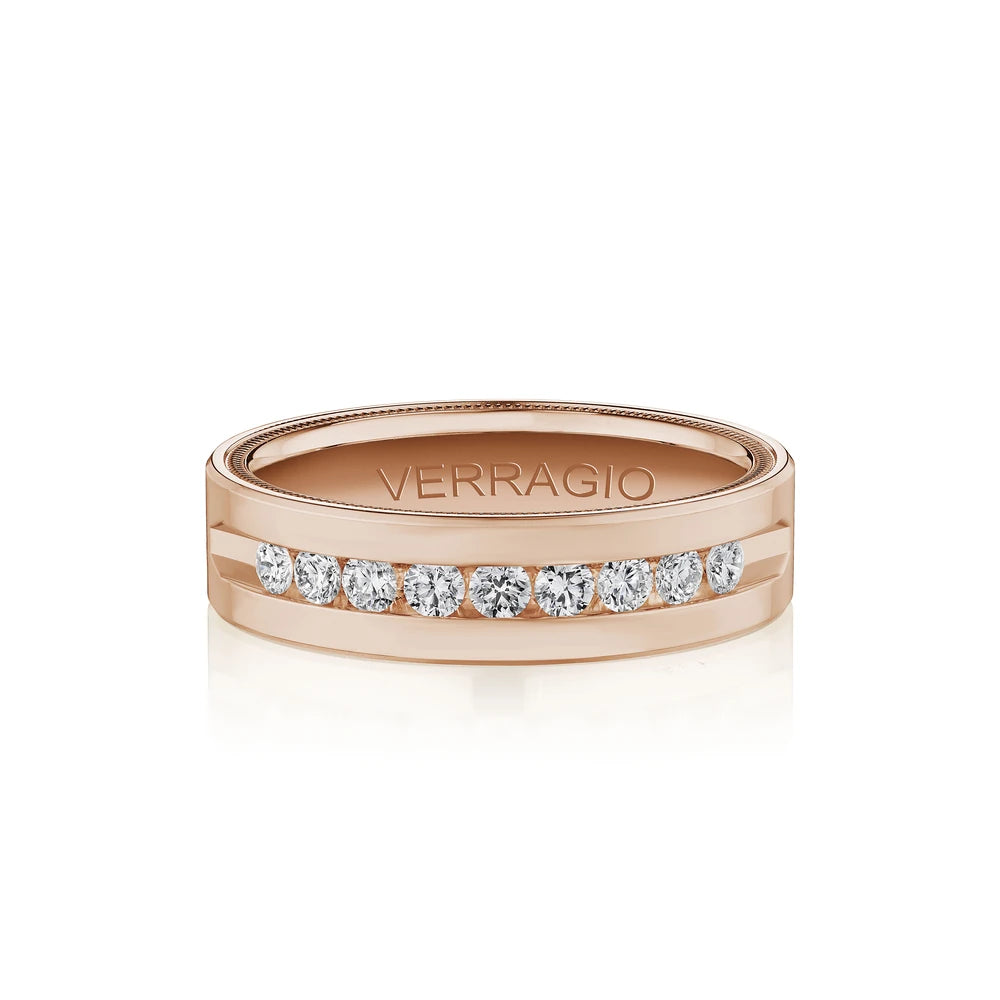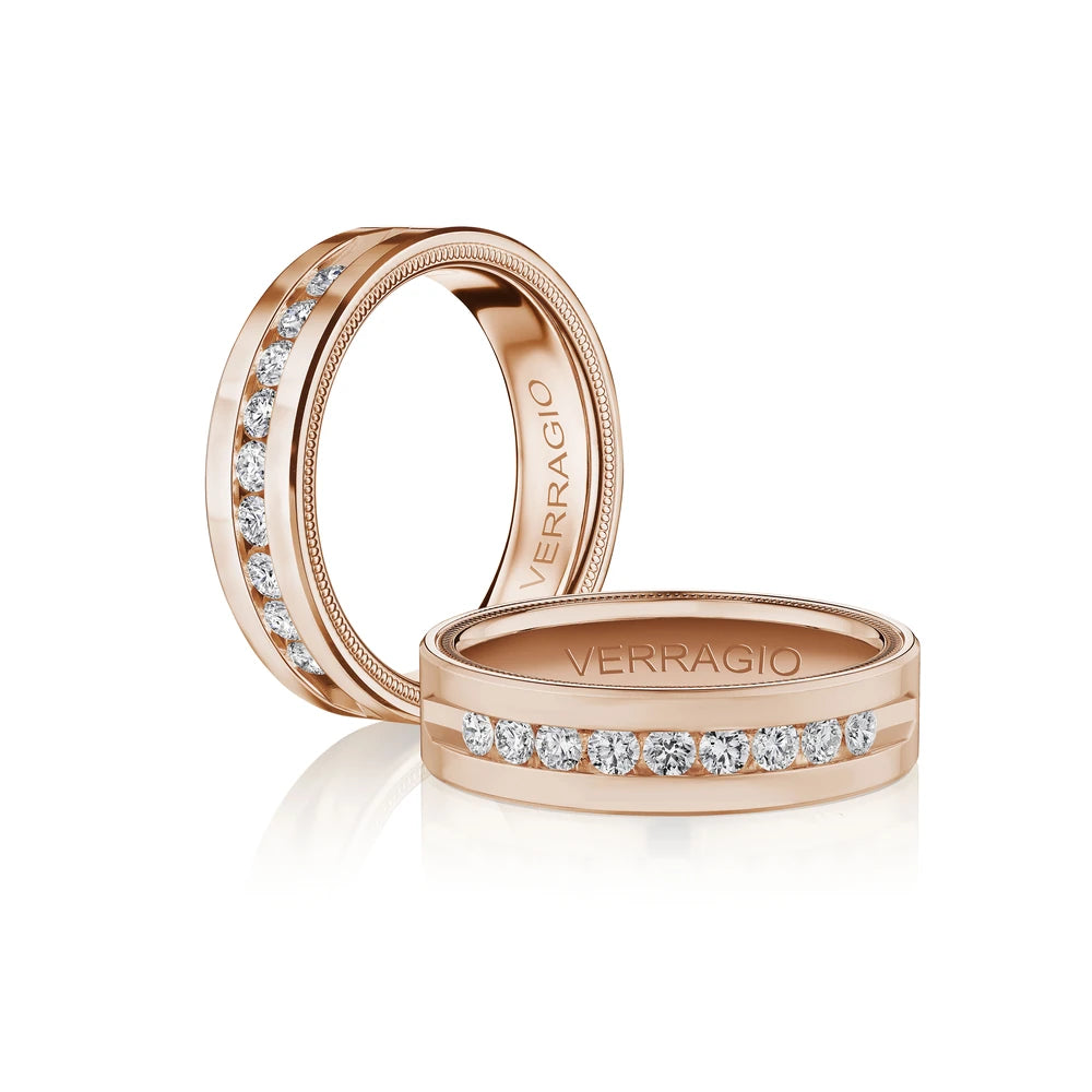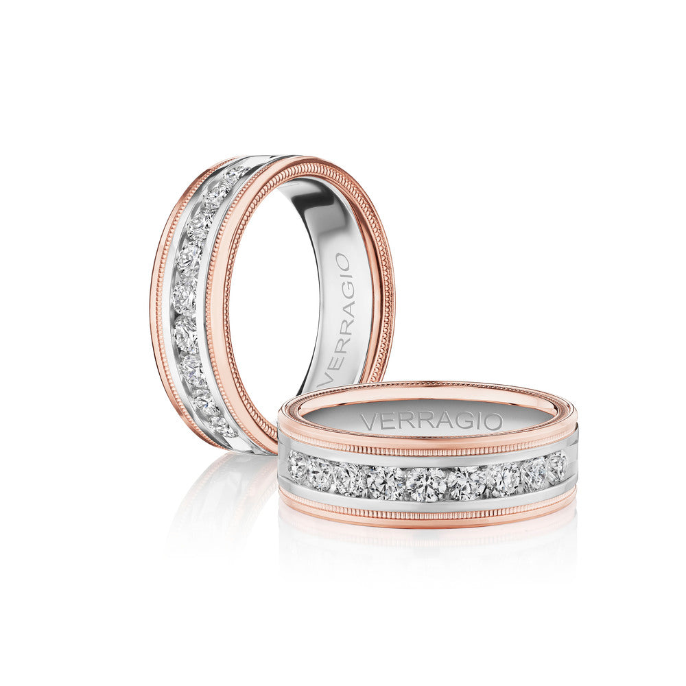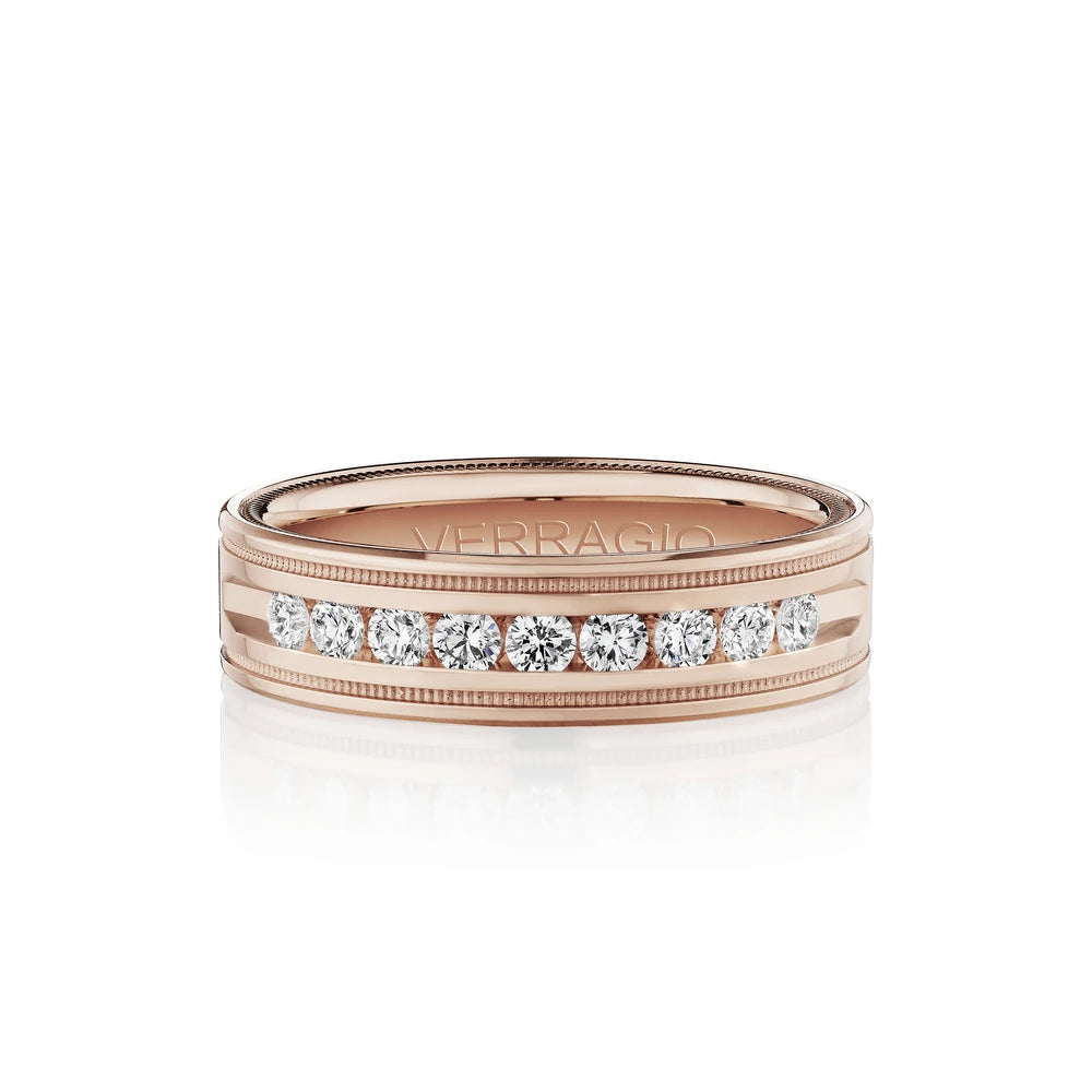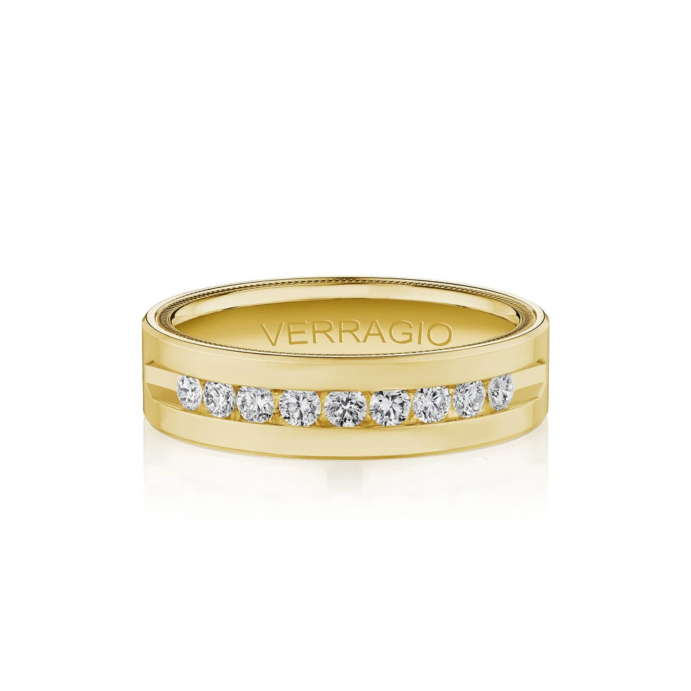 One of our latest wedding band designs in a 8mm width with a high polish finish, made complete with signature Verragio bead-work giving it a tailored feel. Whether you prefer modern or traditional styles, these wedding bands are precisely crafted with artisanal details to stand out.