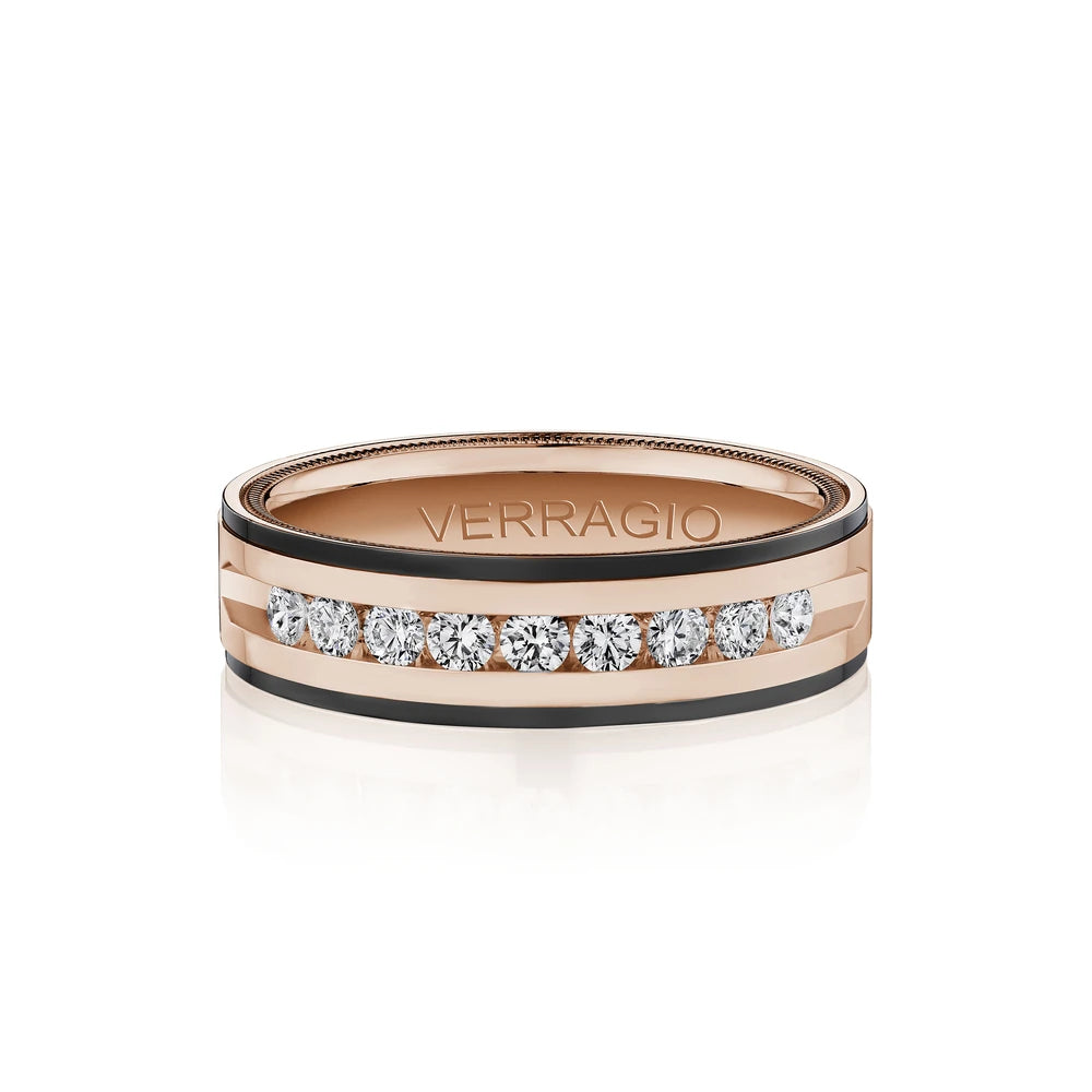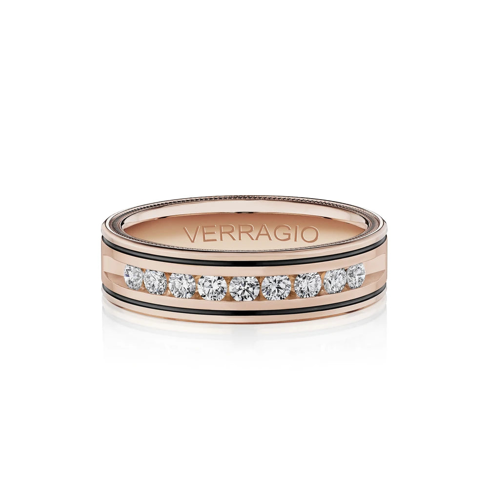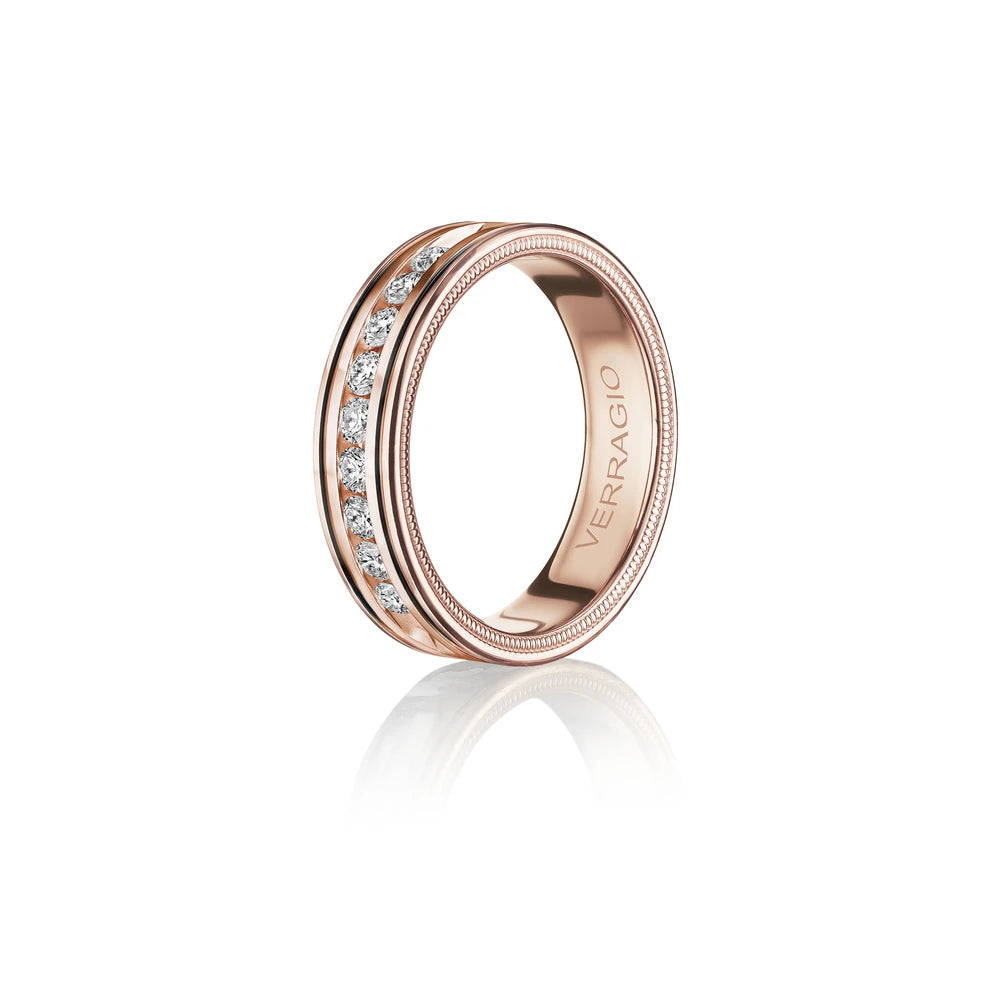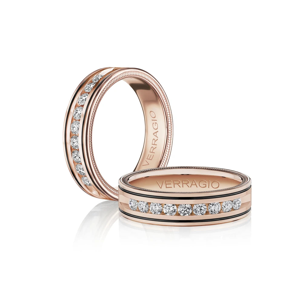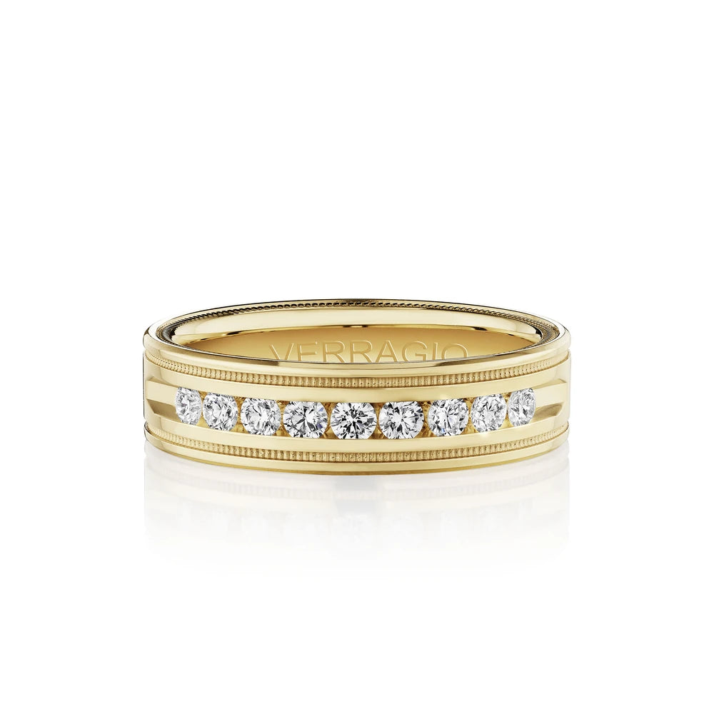 One of our latest wedding band designs in a 8mm width with a high polish finish, made complete with signature Verragio bead-work giving it a tailored feel. Whether you prefer modern or traditional styles, these wedding bands are precisely crafted with artisanal details to stand out.
