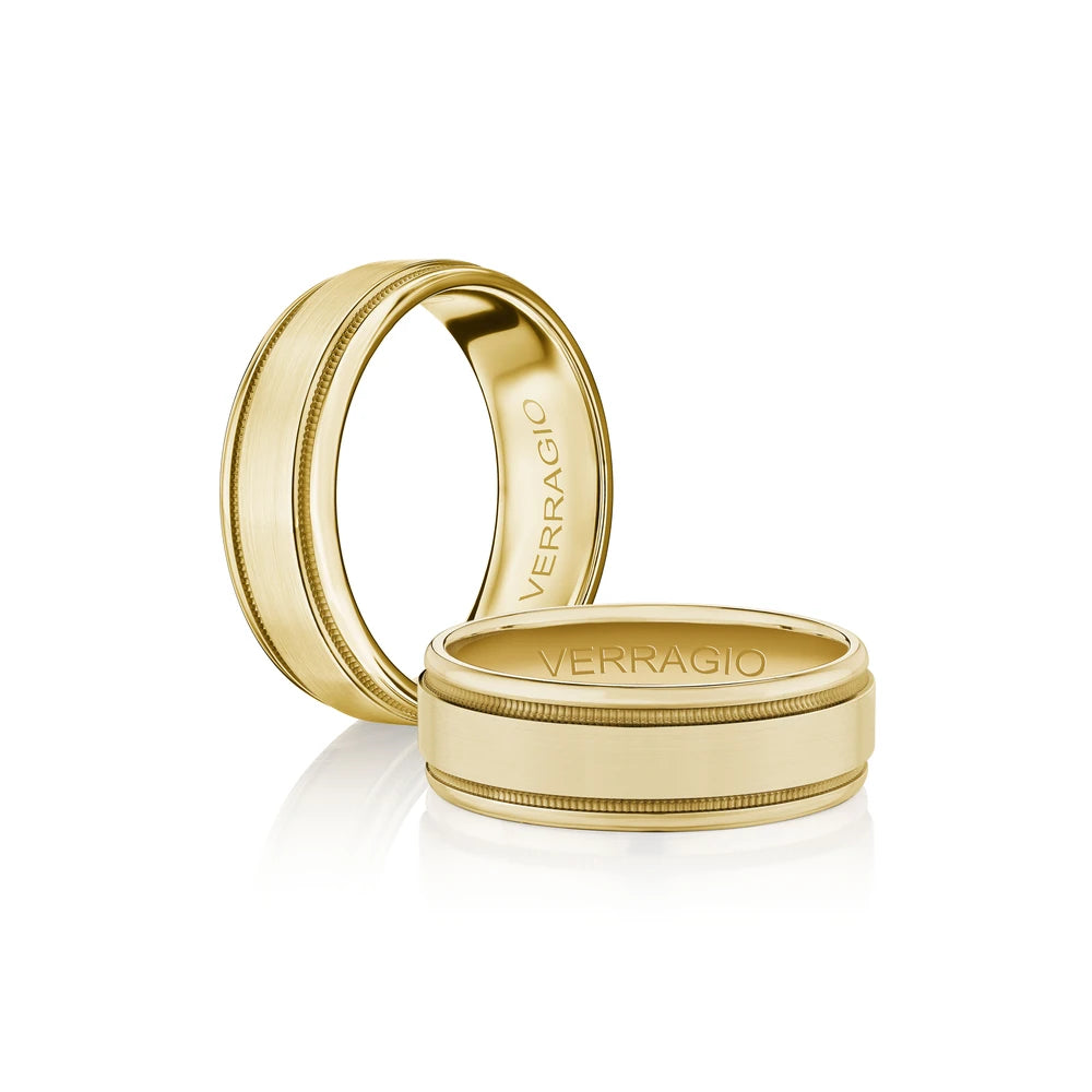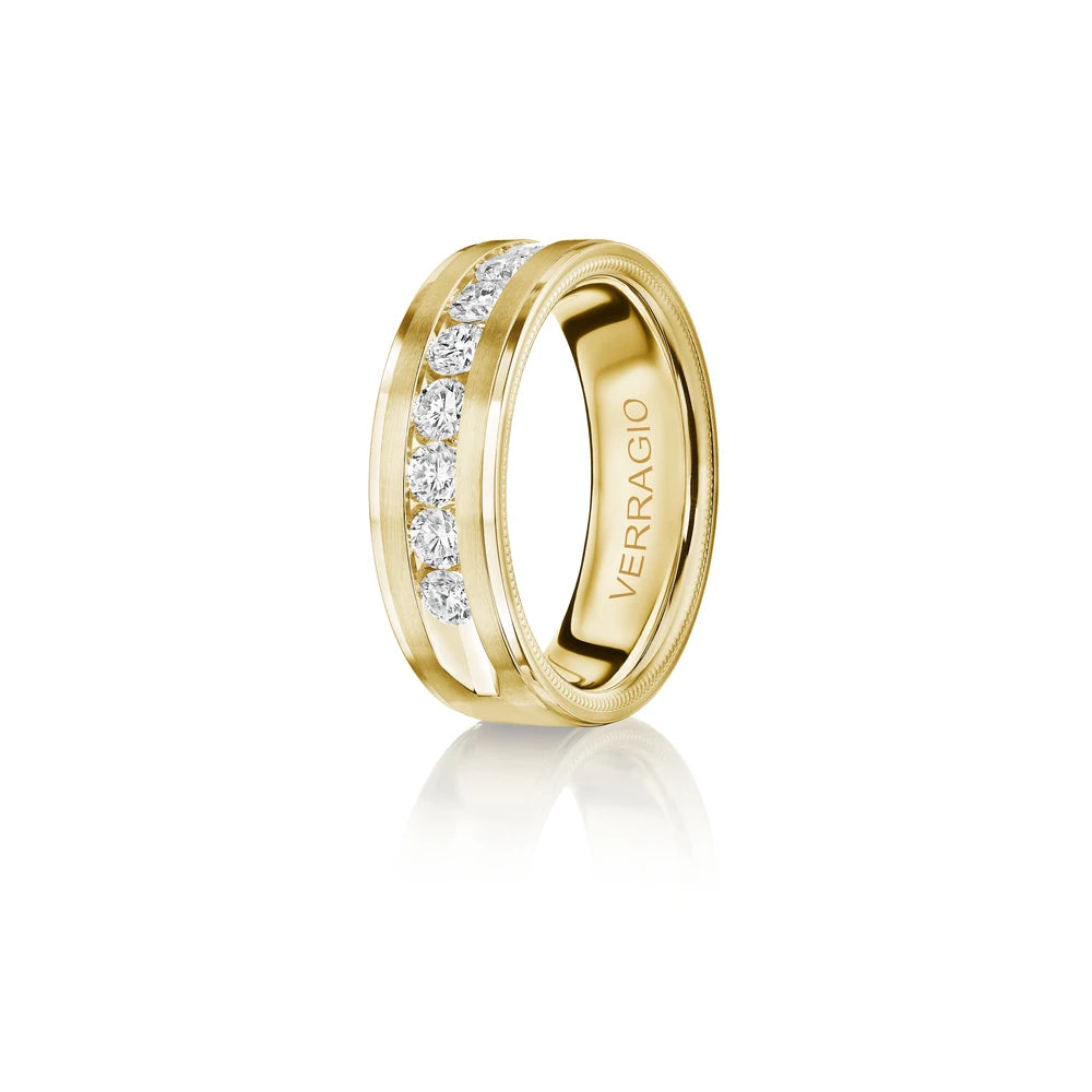 One of our latest wedding band designs in a 7mm width with a matte finish complete with signature Verragio bead-work giving it a tailored feel. Whether you prefer modern or traditional styles, these wedding bands are precisely crafted with artisanal details to stand out.
