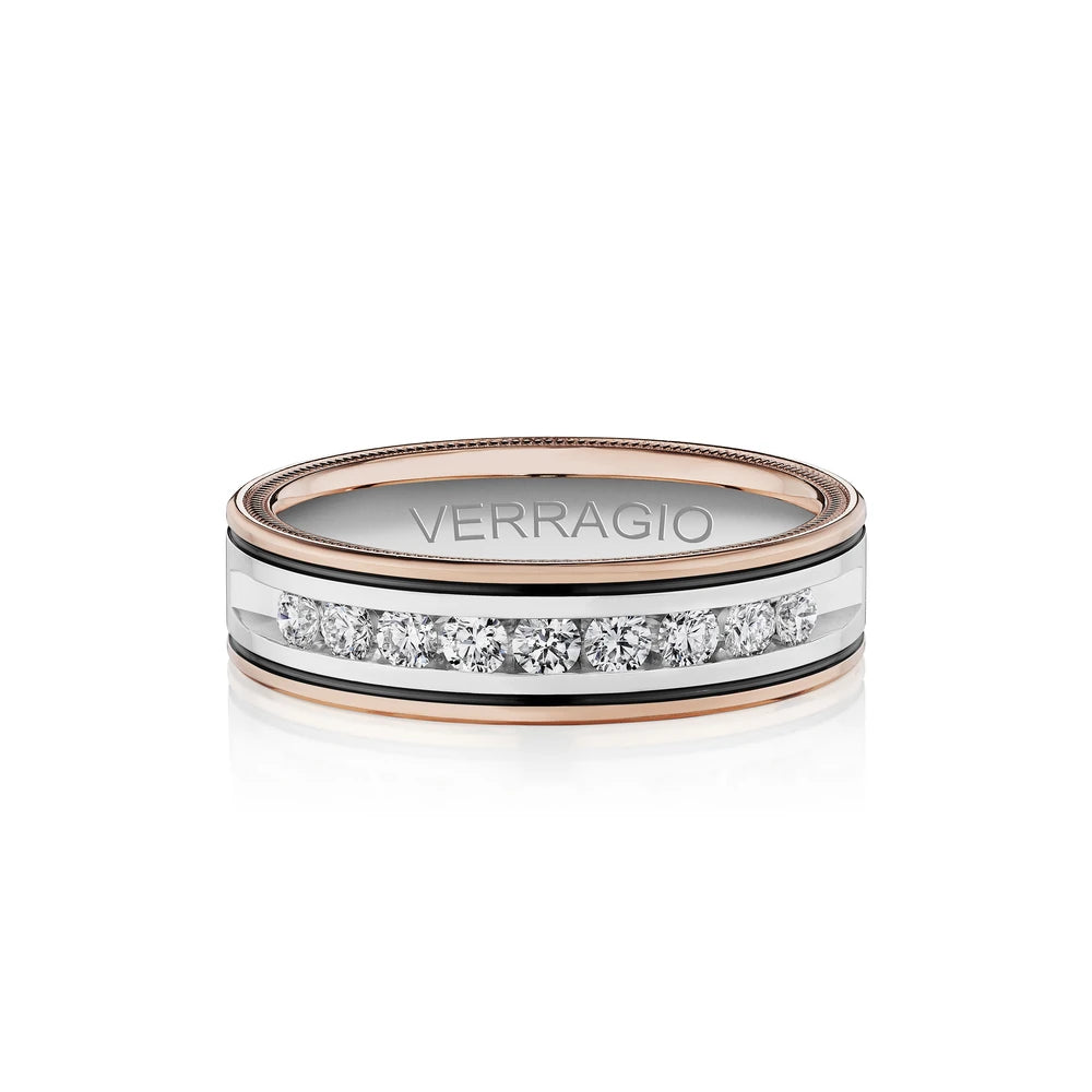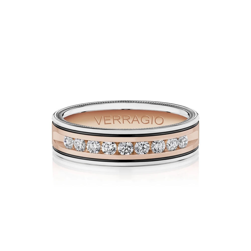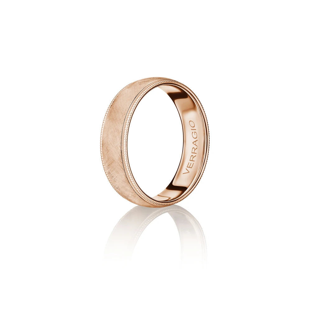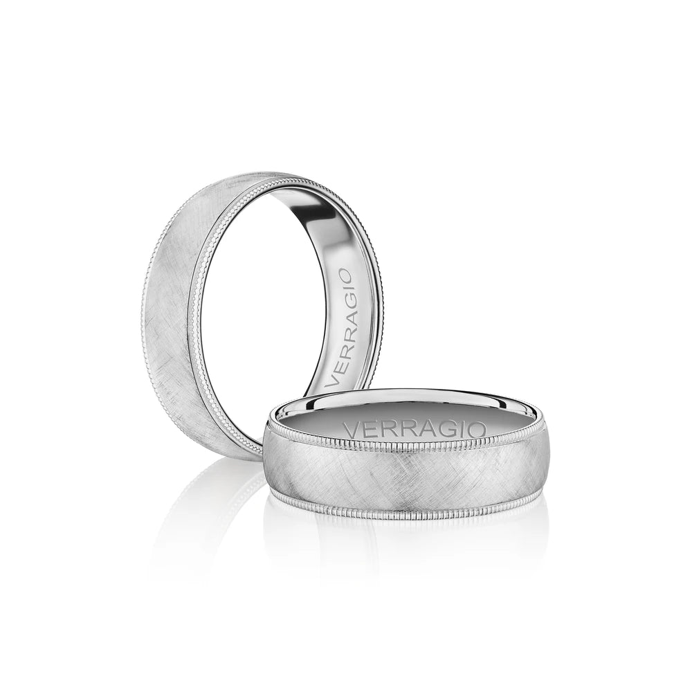 One of our latest wedding band designs in a 6mm width with a brushed wire finish, made complete with signature Verragio bead-work giving it a tailored feel. Whether you prefer modern or traditional styles, these wedding bands are precisely crafted with artisanal details to stand out.