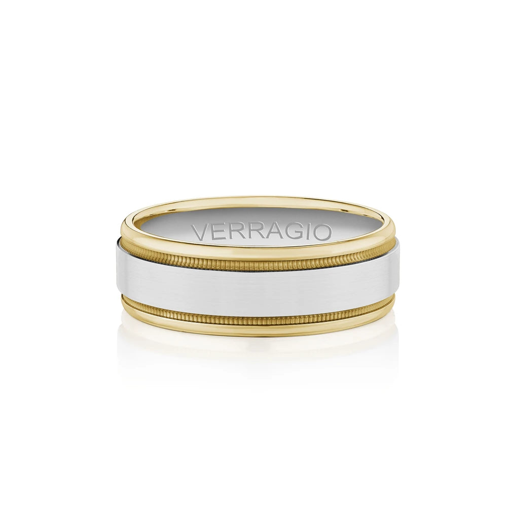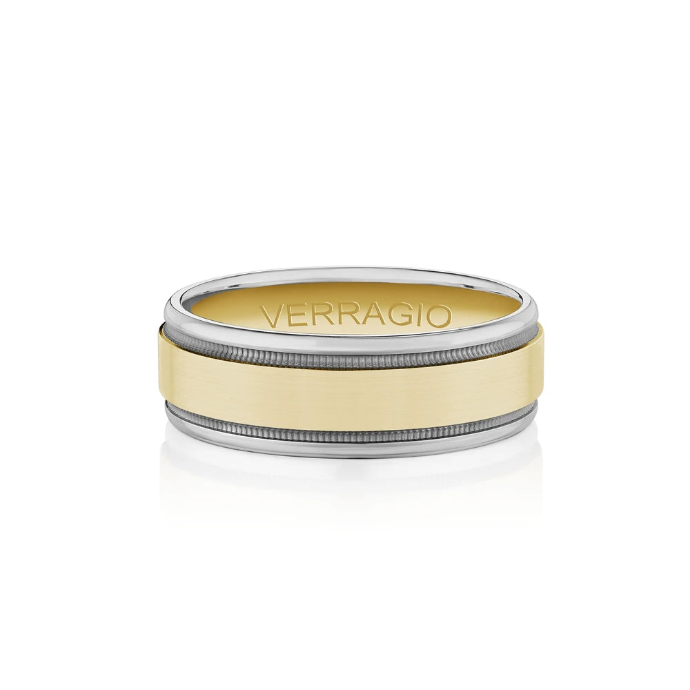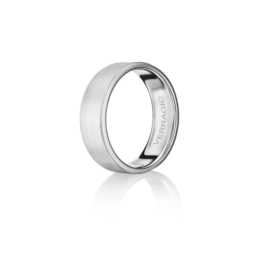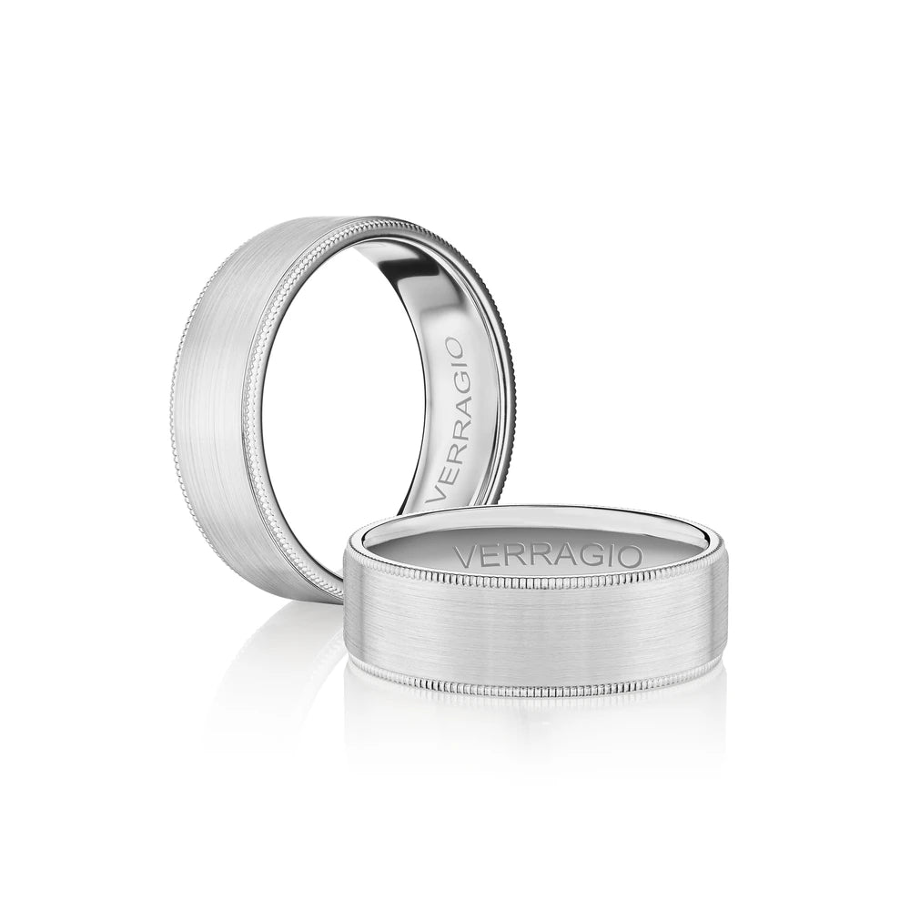 One of our latest wedding band designs in a 7mm width with a matte finish and polished edges, made complete with signature Verragio bead-work giving it a tailored feel. Whether you prefer modern or traditional styles, these wedding bands are precisely crafted with artisanal details to stand out.