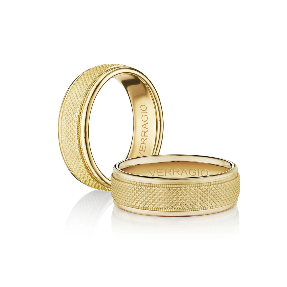 7mm width with a hammered matte finish, made complete with signature Verragio bead-work giving it a tailored feel. Whether you prefer modern or traditional styles, these wedding bands are precisely crafted with artisanal details to stand out.