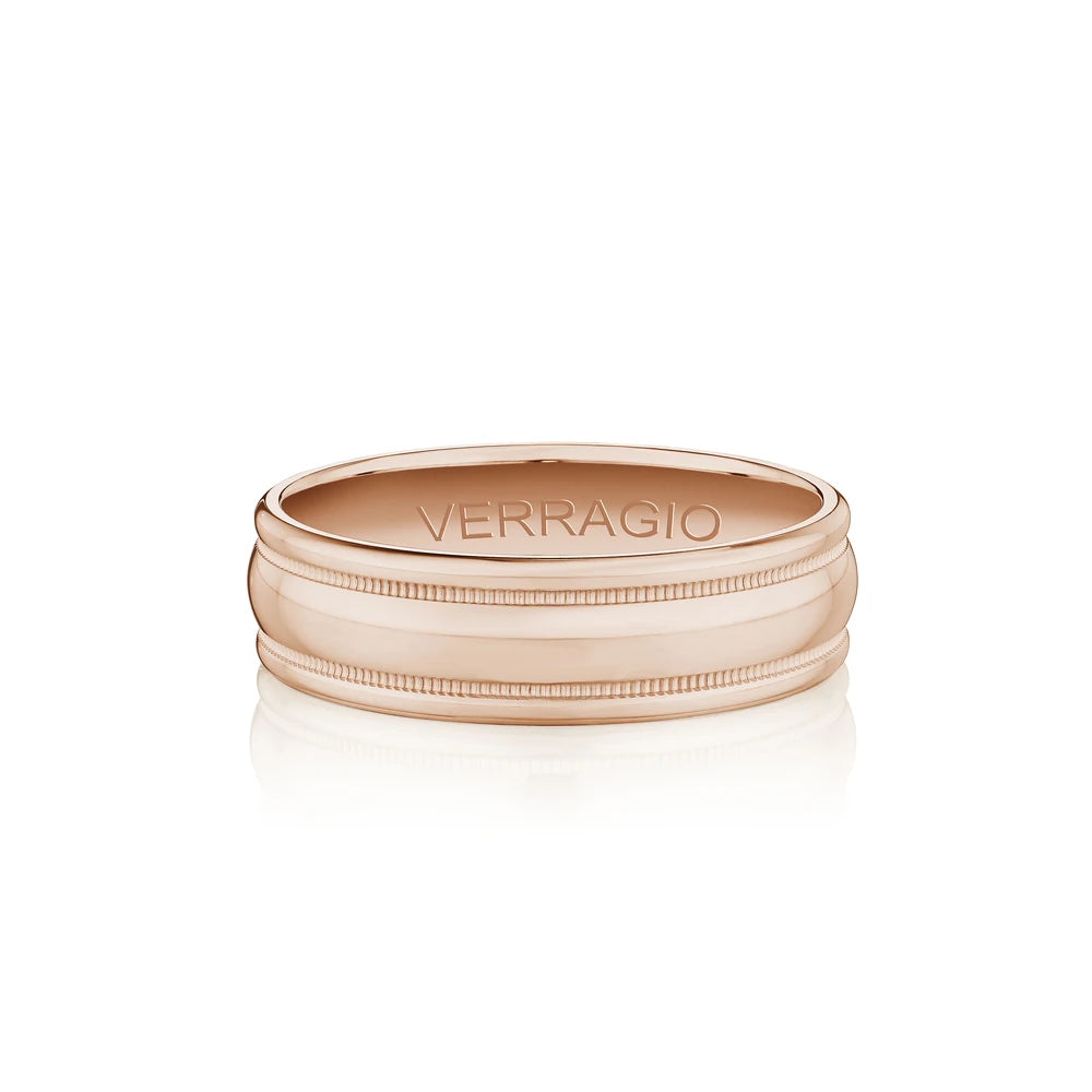 One of our latest domed wedding band designs in a 6mm width, high polished and made complete with signature Verragio bead-work giving it a tailored feel. Whether you prefer modern or traditional styles, these wedding bands are precisely crafted with artisanal details to stand out.