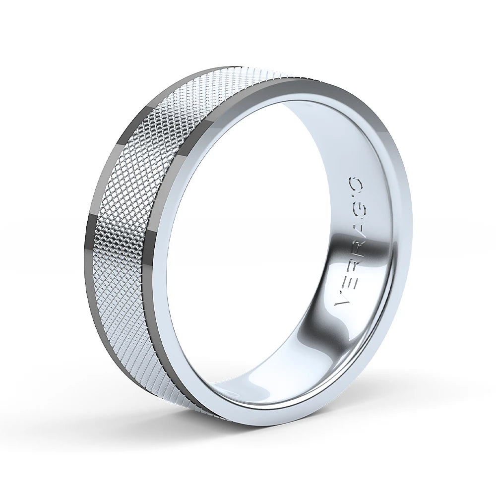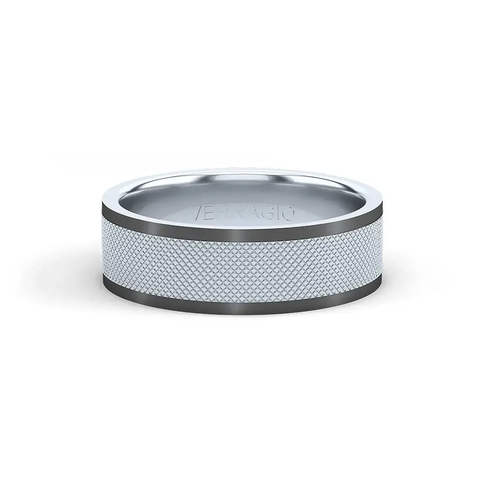 One of our latest wedding band designs in a 7mm width, matte finish, black rhodium edges giving it a tailored feel. Whether you prefer modern or traditional styles, these wedding bands are precisely crafted with artisanal details to stand out.