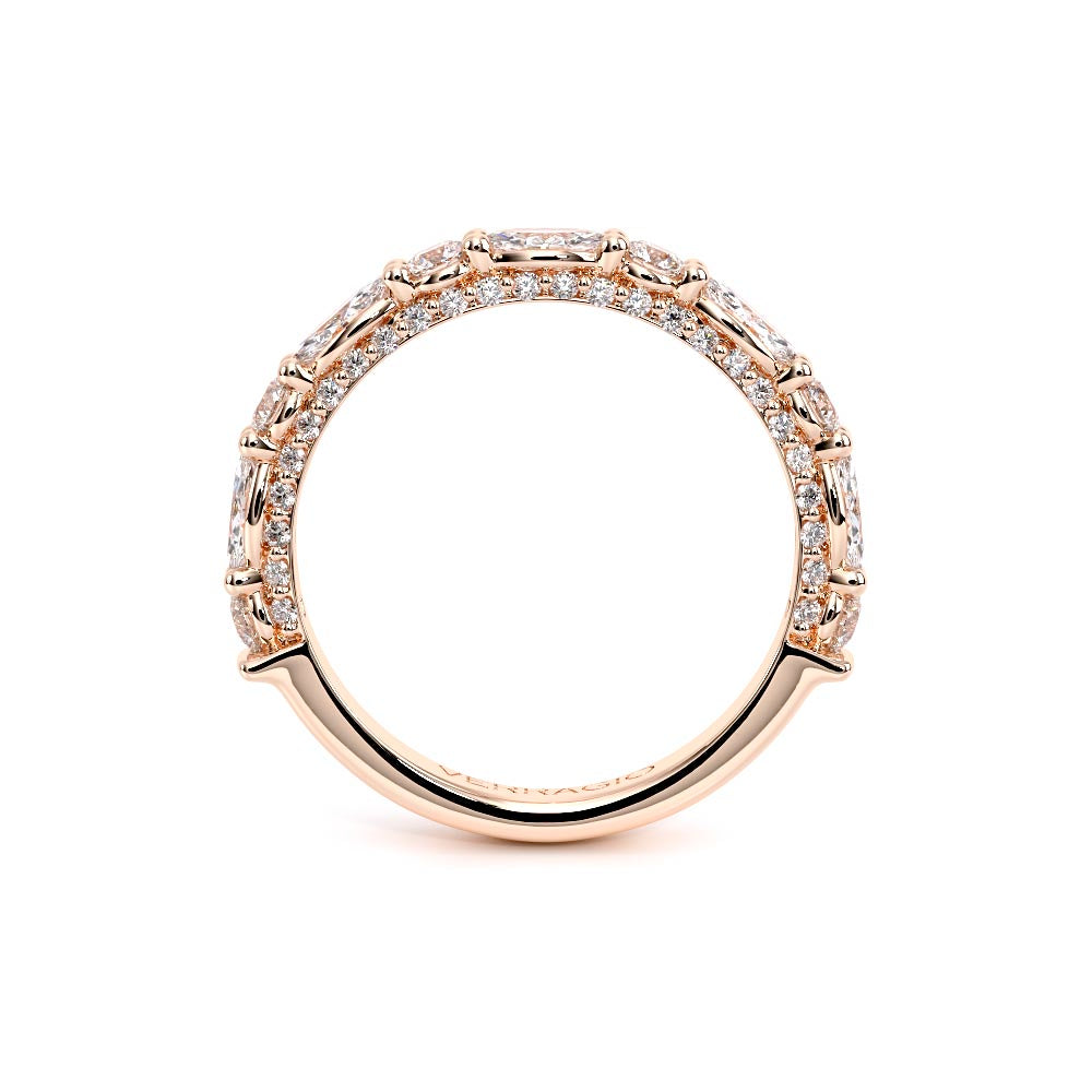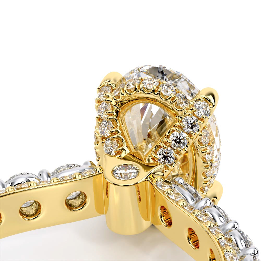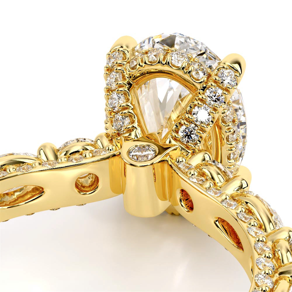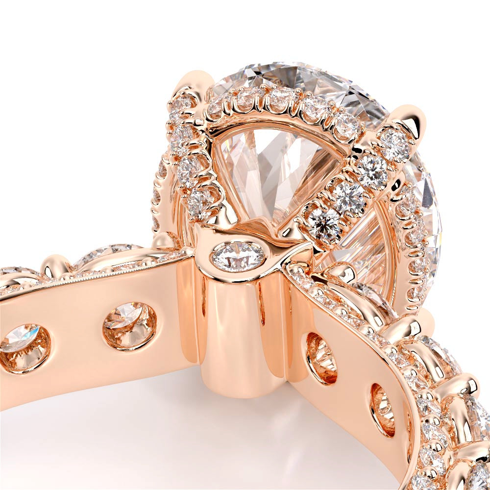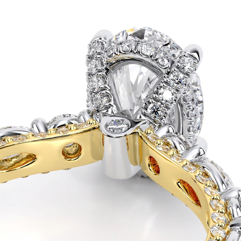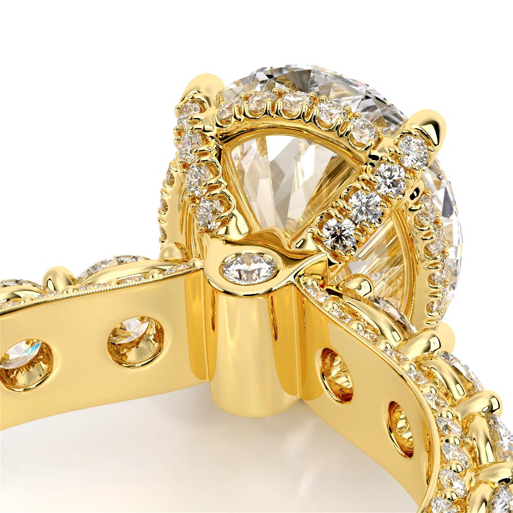 Couture-0490OV-3.0 is an elevated four-prong engagement ring featuring a diamond-bridge head designed to highlight your center stone. Meticulously-set alternating round and marquise diamonds in a shared-prong setting wrap the elegant shank, enhanced with a pave-set three-quarter diamond riviera. The Verragio signature crest completes the statement look.