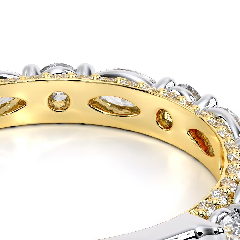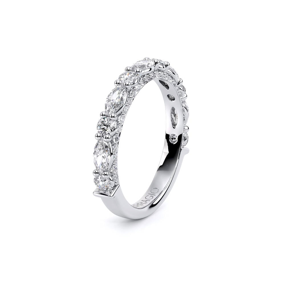 Couture-0490W2.5 is meticulously set with alternating round and marquise diamonds in a shared-prong setting, artfully nestled in an elegant shank. A pave-set three-quarter diamond riviera seamlessly completes the sophisticated design.