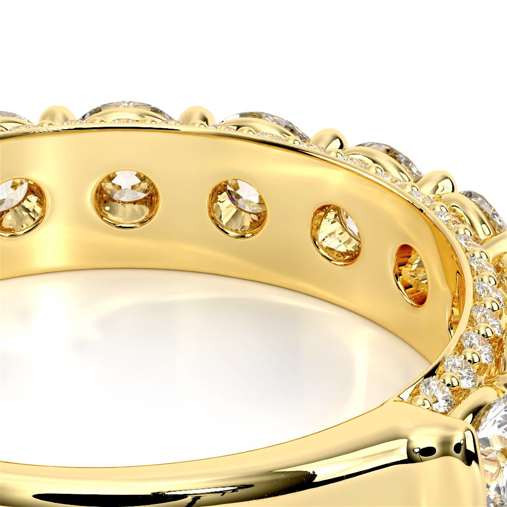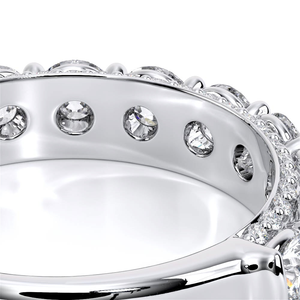 Couture-0489W3.0 is meticulously set with round diamonds in a shared-prong setting, artfully nestled in an elegant shank. A pave-set three-quarter diamond riviera seamlessly completes the sophisticated design.