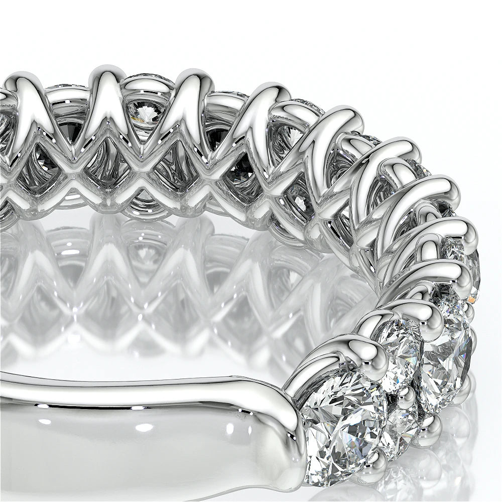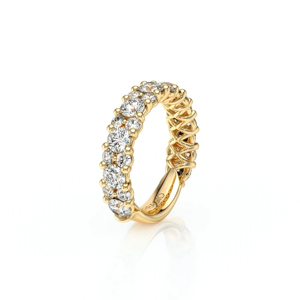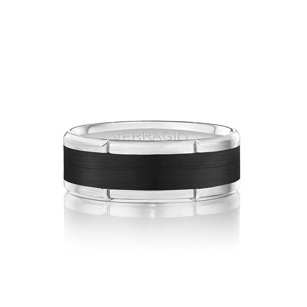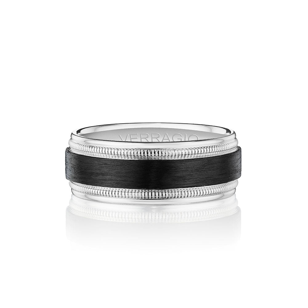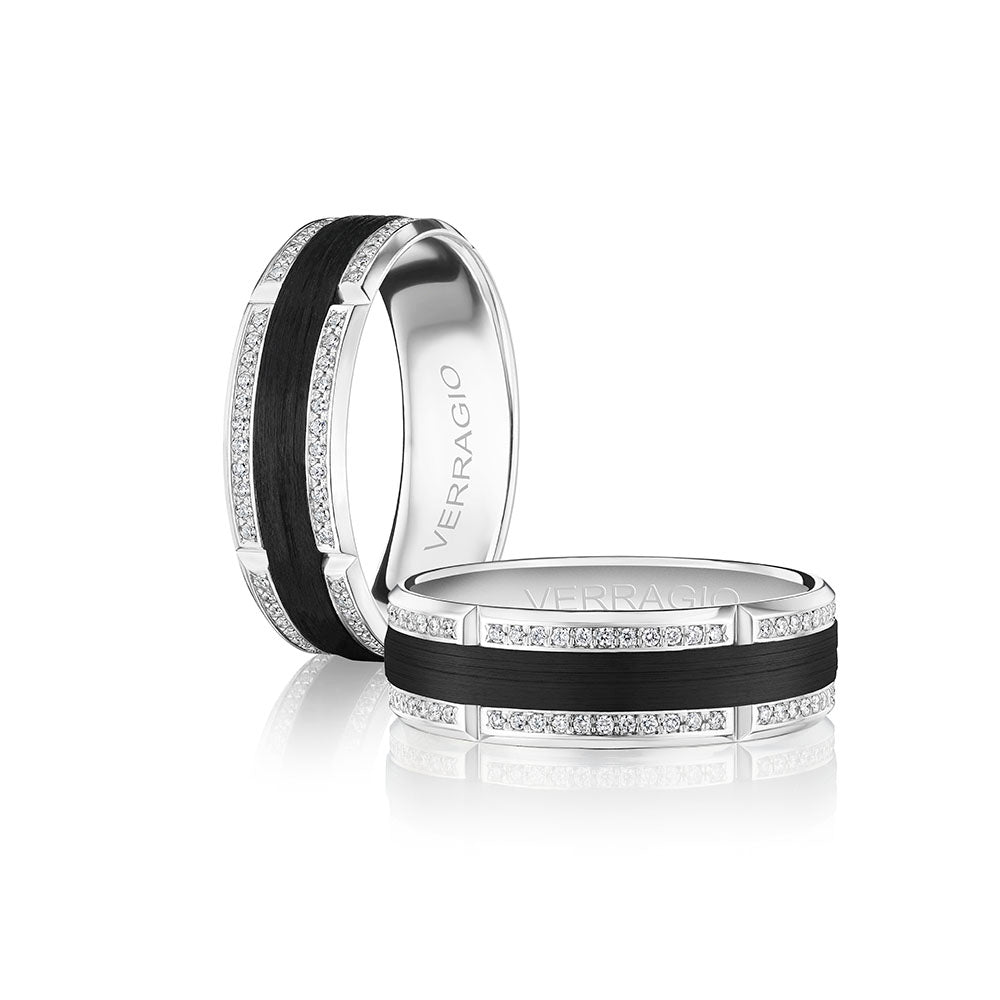 One of our latest wedding band designs in a 7mm width and brilliant diamond accents in contrast to the unique matte finishing. Polished edges add a modern look while the signature Verragio bead-work give it a tailored feel. Whether you prefer modern or traditional styles, these wedding bands are precisely crafted with artisanal details to stand out.