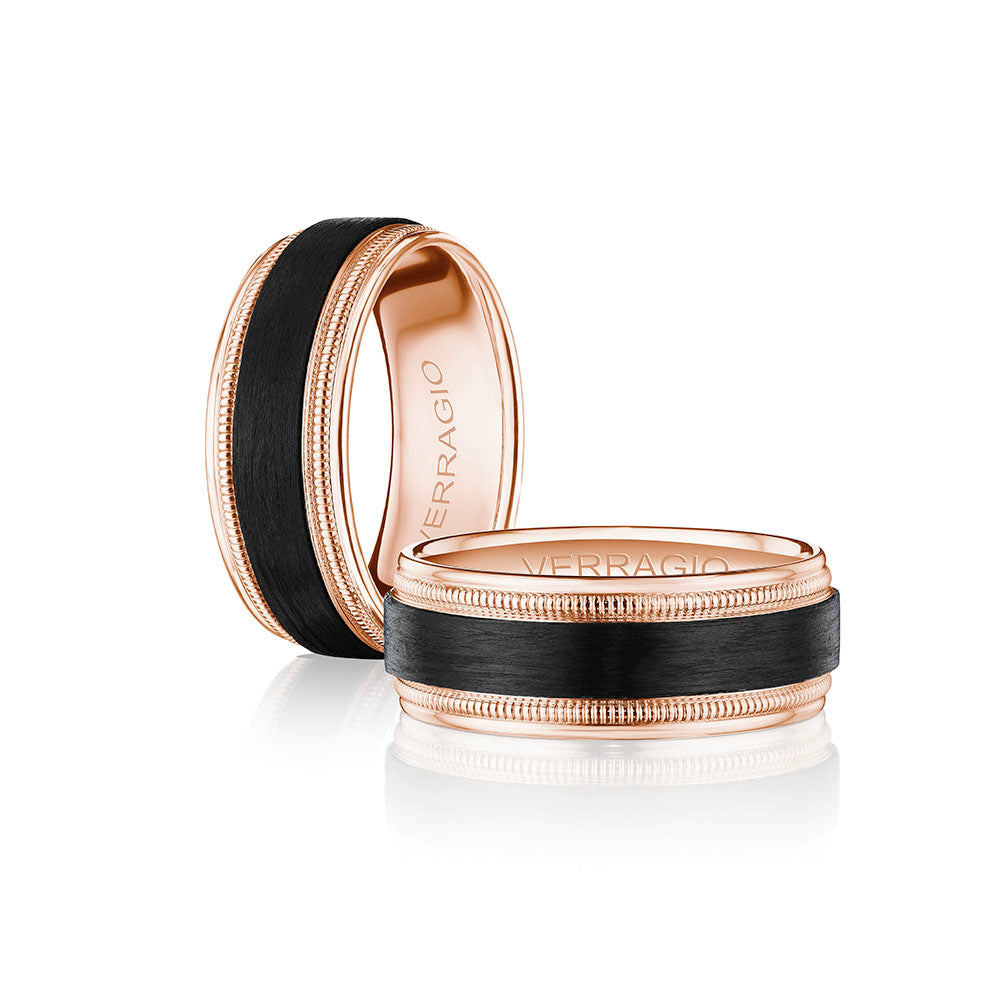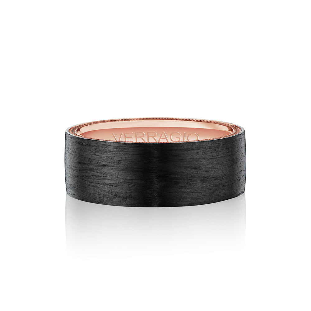 VW-7012 is our handsome 7MM hammered men's band with a matte finish. Refined with a touch of Verragio's signature beading in rose gold, designed to stand the test of time.