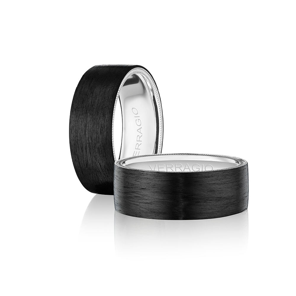 A thin carbon fiber accent circumvents this band and is accented on both sides with intricate detailing. This beautiful combination gives a subtle yet powerful statement. This band is 8mm wide and is durable and comfortable for everyday wear.