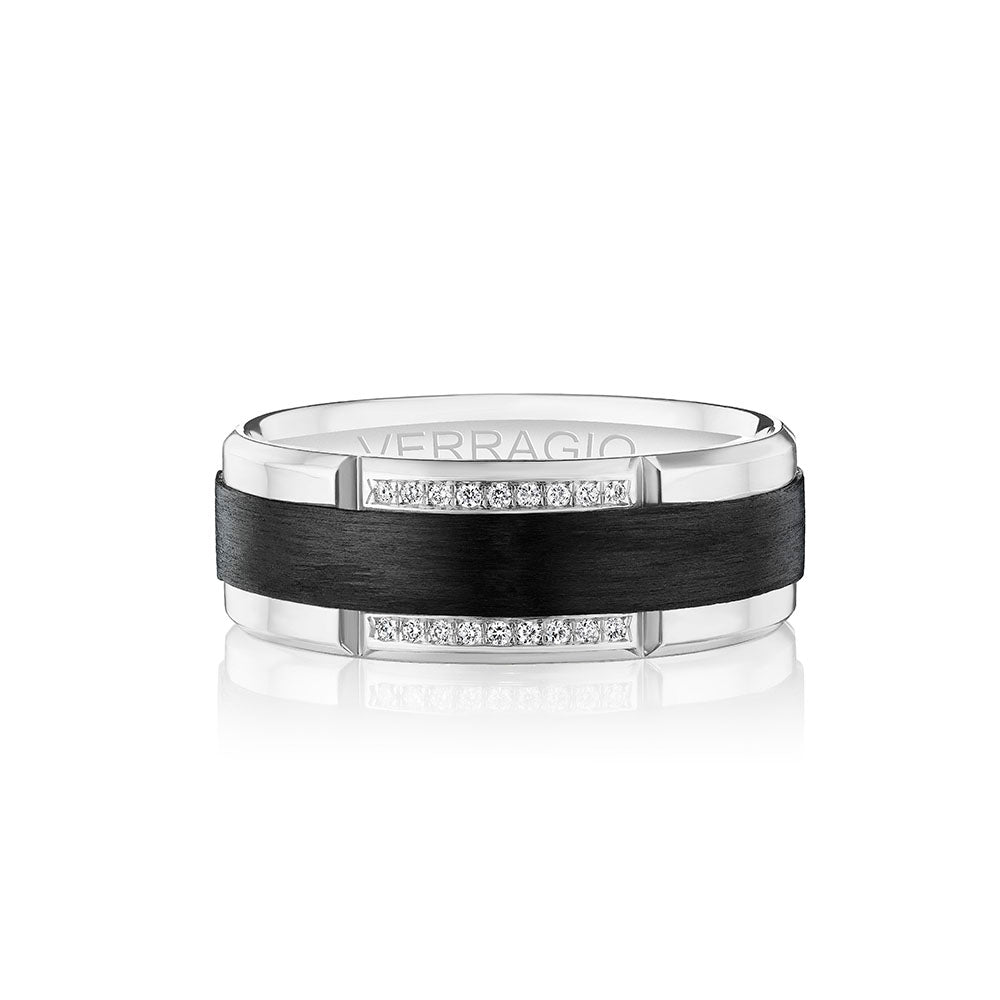 VWD-7913 is a modern matte finish Geometric 7MM width diamond men's band. Adorned with princess cuts throughout the band, the skillfully high polished edges are enhanced by Verragio's signature rose gold beading.