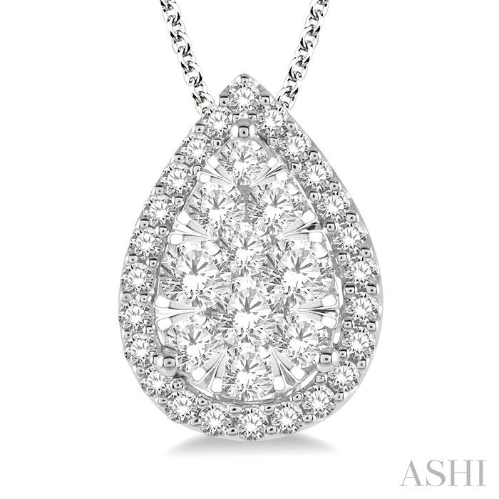 PEAR SHAPE HALO LOVEBRIGHT ESSENTIAL DIAMOND PENDANT