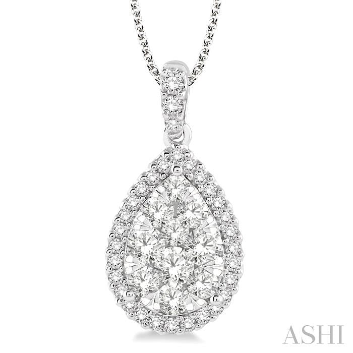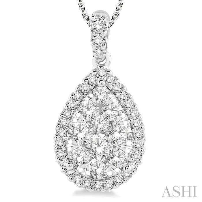 PEAR SHAPE HALO LOVEBRIGHT ESSENTIAL DIAMOND PENDANT