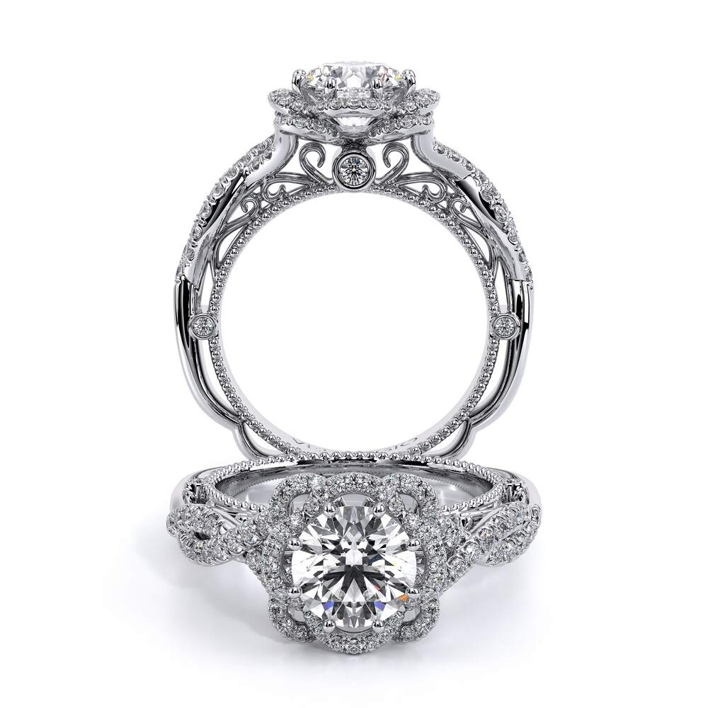 VENETIAN-5051R engagement ring features our beautiful Verragio floret halo with a twisted shank encrusted with round brilliant diamonds. An intricately crafted lace design along with our Verragio signature beading further enhances this gorgeous piece and you can't help but fall in love with it.